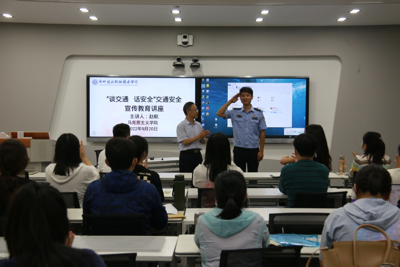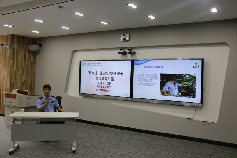 为推进省级文明校园创建,进一步提高我院教师道路交通安全意识,有效预防和减少道路交通事故的发生。9月20日,马克思主义学院特别邀请郑州交警六支队机动大队赵航教导员,在7415教室开展“谈交通话安全”主题宣讲活动。马院全体教师和学习社部分学生参加主题宣讲。
