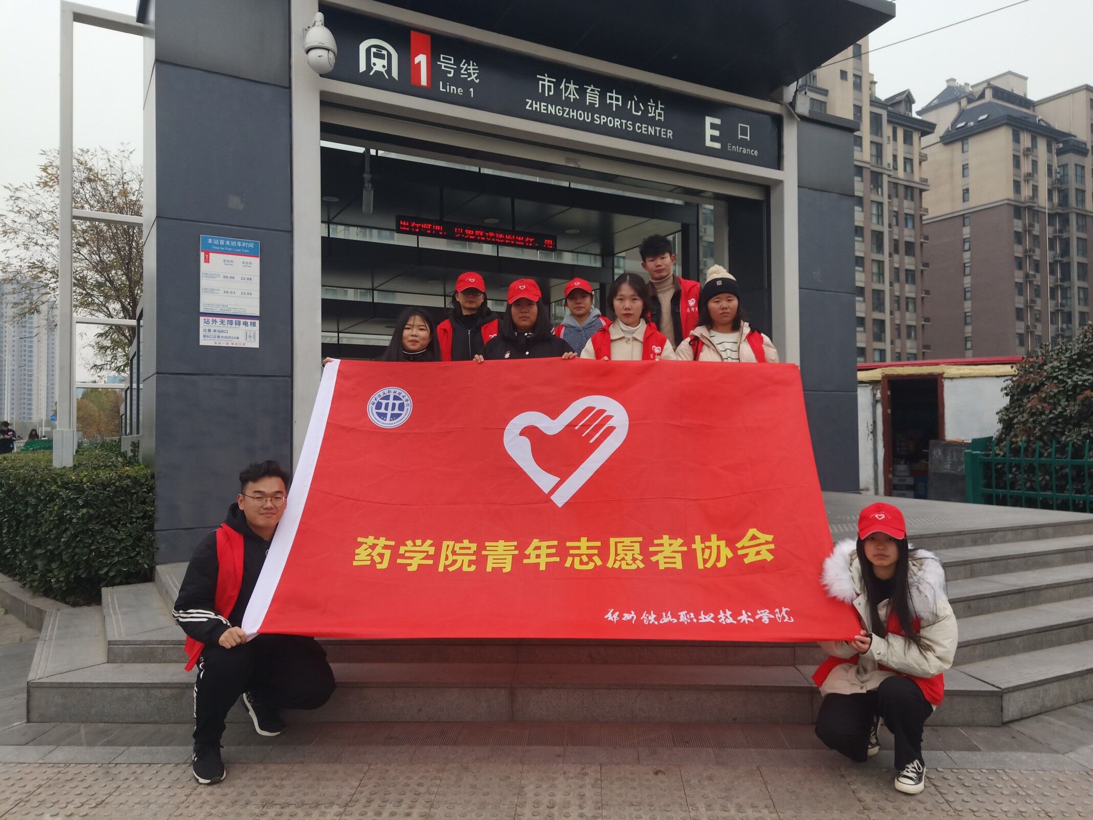 药学院青年志愿者协会于11月30日7:30在市体育中心地铁站周围路段进行文明交通疏导志愿服务,引导行人遵守交通规则。