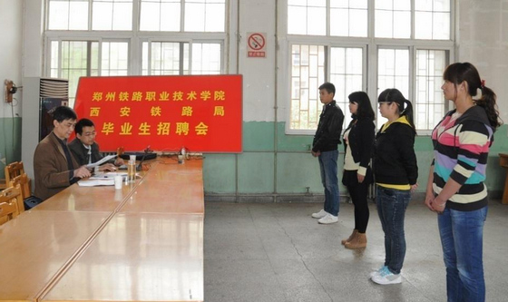 近日,郑州铁路局、西安铁路局和昆明铁路局来我校举办专场招聘会,招聘2014届、2015届轨道类等相关专业毕业生。各相关院系积极组织学生报名,参加各铁路局应聘。经过初选、面试、审核、体检等环节,郑州铁路局与体检合格的535名2015届毕业生签订了就业协议;昆明铁路局当场与75名毕业生签订了就业协议;西安铁路局录用名单随后回复学校。