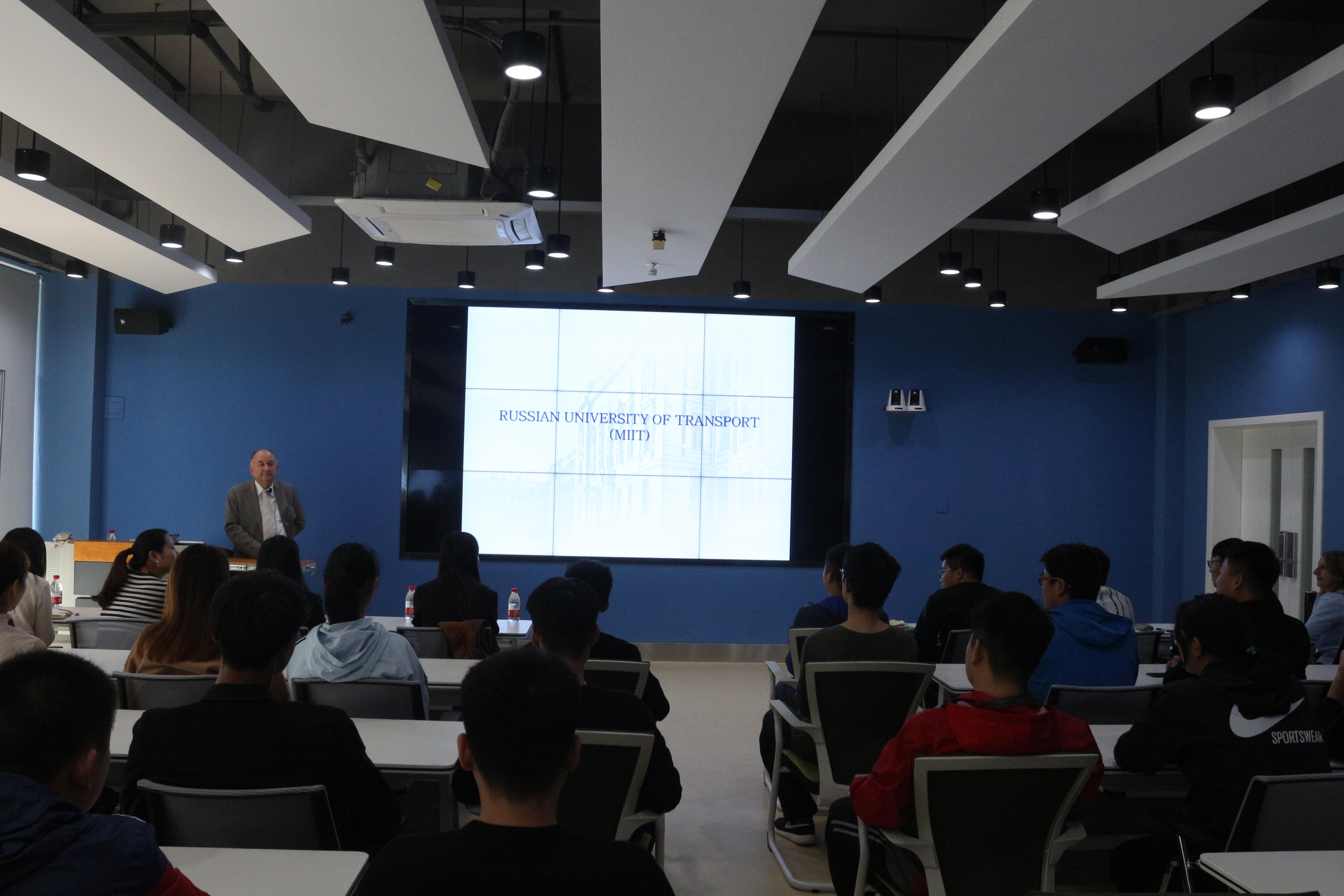 10月23日下午,国际教育学院(欧亚交通学院)2019年赴俄罗斯留学宣讲会在7211隆重举行,俄罗斯联邦国立交通大学副校长格拉兹科夫先生亲莅现场进行了宣讲,国际教育学院(欧亚交通学院)院长徐坚、部分老师和有意愿赴俄留学的学生近100人参会聆听宣讲。