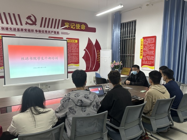 为提升学生干部理想信念和服务意识,在日常学生干部培训基础上,丝路书院党总支制定线上线下相结合的培训计划,由党总支委员、国家奖学金获得者、国赛获奖者、省级三好学生分别为学生干部开展特色主题培训。培训内容包括:学习贯彻党的二十大精神、学生干部工作方法、能力与作风建设等专题,培训收到良好效果。