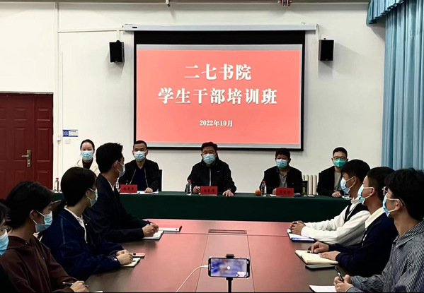 为提升书院制背景下学生干部的整体水平,培养新时代学生干部努力拼搏、锐意进取、开拓创新的能力,促进学生管理服务工作再上新台阶,二七书院举办了“坚定理想信念·提升能力素质”学生干部培训班, 2021级、2022级班长和团支书、部分团学干部共140余人参加了此次培训。