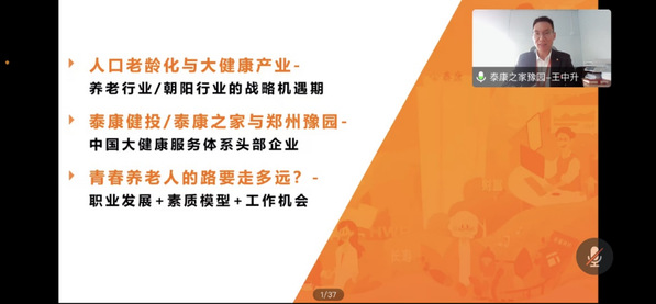 11月15日下午,护理学院邀请泰康之家豫园(郑州)养老服务有限公司人力资源总监王中升在线上给天使书院护理2021级和2022级的学生作题为《长寿时代与大健康产业》的讲座。