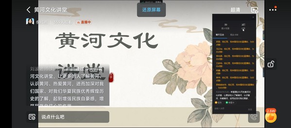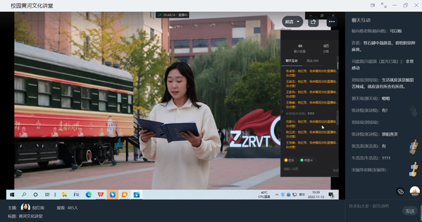 此次讲堂分为“非遗起航”、“诵读黄河”、“宝鉴黄河”、“诗和远方”四个篇章。非遗传承人李茜老师线上进行中原非遗作品展讲,知名朗诵者和我校学子诵读黄河诗篇,河南省科学院地理所研究员、旅游规划专家龚新在线进行黄河文旅线路宣讲,让广大师生充分领略黄河之美,感受中华民族优秀传统文化的魅力,吸引师生连连点赞。古诗词竞答、甲骨文竞猜环节,更是将线上气氛推向高潮,师生互动频繁,现场精彩纷呈。活动历时1.5小时,获得13.4万人次点赞。