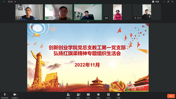11月22日下午,根据学校党委统一安排,创新创业学院党总支教工第一党支部和教工第二党支部分别召开弘扬红旗渠精神专题组织生活会。会上,全体党员首先学习了党的二十大精神和习近平总书记视察安阳重要讲话精神,并观看了纪录片《根脉—红旗渠精神》。随后,全体党员围绕会议主题、联系个人思想和工作实际逐一发言,交流学习心得体会,明确了今后努力方向。