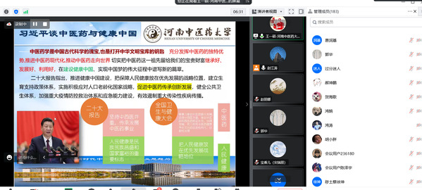 11月29日,药学院特邀河南中医药大学王一硕副教授作题为《坚持守正创新,推动中药高质量发展》的学术讲座。该讲座采取线上方式进行,药学院、复兴书院等相关专业师生参加。