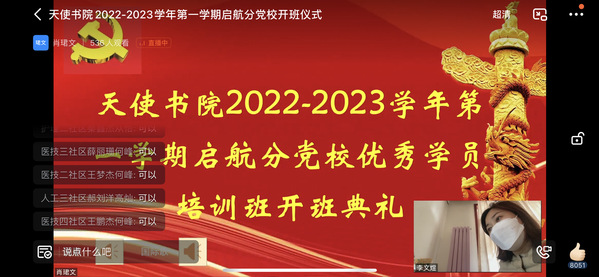 12月31日下午,天使书院通过钉钉直播的方式举办2022—2023学年第一学期启航分党校优秀学员培训班开班典礼。书院党总支书记、院长王芳,副书记、副院长王翡翡,副院长王小珂,书院办公室主任马鹏飞,组织员李文煜及全体育人导师出席会议,521名学员参加会议。会议由组织员李文煜主持。