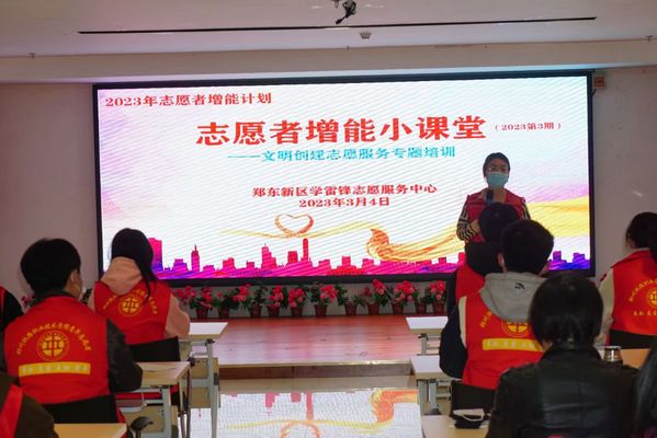郑东新区新时代文明实践站同时邀请到了代杰老师以文明家庭家长的身份为大家带来了“传家训、立家规、扬家风”宣讲。代杰老师在宣讲中讲述了自己家庭中每名成员投身祖国事业的感人事迹,阐述了家庭中家教家风建设的重要意义,分享了自己作为志愿者在志愿服务中收获到的幸福与充实。志愿者们对代老师家庭成员的先进事迹肃然起敬,并深刻认识到了文明家风家训建设的重要性,提高了投身于志愿服务行列的热情。随后,志愿者们参加了“增能小课堂”,提升了服务能力和水平。