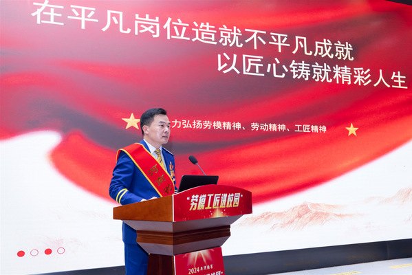 党委书记田道敏致辞。他介绍了学校的办学情况和育人成果,并指出,学校将加强职业教育和紧缺人才培养,着力打造高素质教师队伍,讲好劳模故事、劳动故事、工匠故事,在全校营造尊重劳动、尊重知识、尊重人才的良好风尚,为建设“人人持证 技能河南”提供强有力的人才支撑。