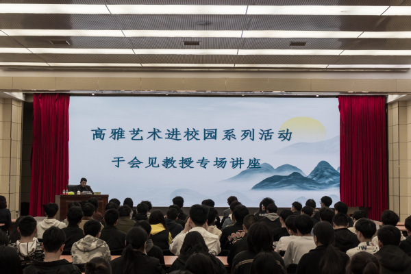 于会见教授是原河南省美术馆馆长、河南省政协书画院副院长、顶端艺术研究院院长、河南工业职业技术学院艺术设计学院院长、国家一级美术师(二级教授)。他以其深厚的学识和丰富的实践经验,深入浅出地向师生们介绍了高雅艺术的魅力所在,并通过生动有趣的实例,引导大家领略艺术之美。他强调了高雅艺术对于个人成长和社会发展的重要意义,鼓励学生们积极投身艺术实践,提高审美情趣。于教授表示,感受艺术、践行艺术对于人生来说是一大收获,老师和同学们要让艺术充实于生活与学习之中,深入体验美、感受艺术的魅力。并倡议绘画爱好者要领略不同风格的艺术作品,贴近艺术,探寻美,同时要有身为艺术家的使命感与责任感,为中国艺术的提升贡献自己的一份力量。