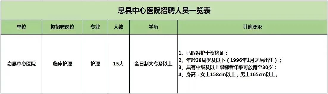根据临床业务需要和用人计划,现面向社会公开招聘15名护理专业人才: