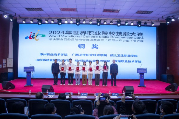 10月29日,2024年世界职业院校技能大赛总决赛食品药品与粮食赛道药品生产小组(赛项)争夺赛在江苏淮安闭幕,来自全国30个省(自治区、直辖市)50支代表队162名选手激烈比拼,我校参赛队荣获该赛项铜奖。