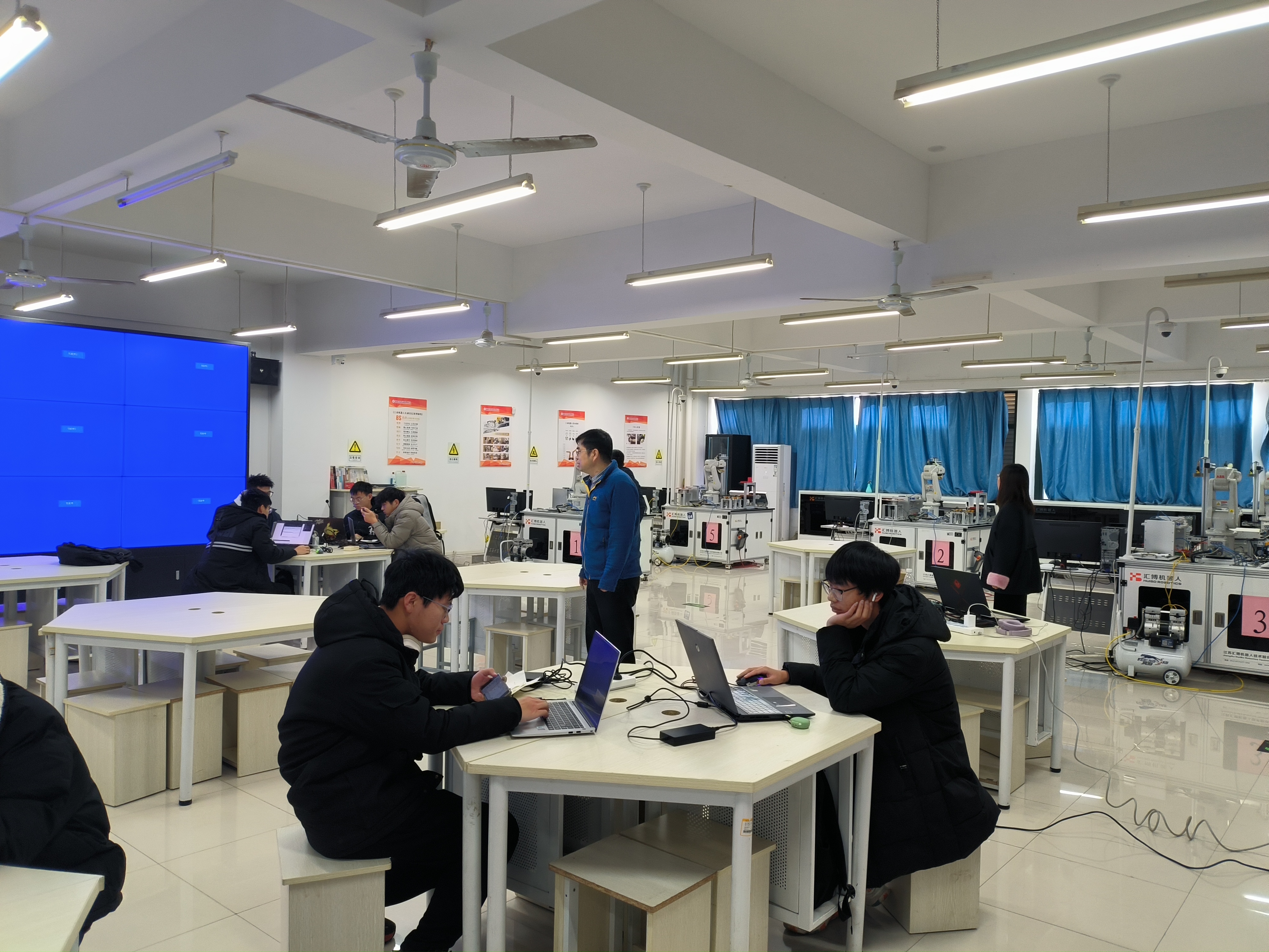 电气工程学院全体班子成员参加本次安全检查工作,对各实验实训室、各教研室进行逐一检查。重点检查了实训室的用电安全、假期开展备赛教学实验室的安全管理、实验室日常整备状态、消防设施、实训课程资料归档以及应急处理预案等多个方面。就办公室充电器、大功率用电器、消防设施、人走断电等可能存在的安全隐患进行再梳理,明确各场所安全责任,确保风险隐患排查整治工作要求落实到位。对检查中发现问题的实训室要求当天完成整改。