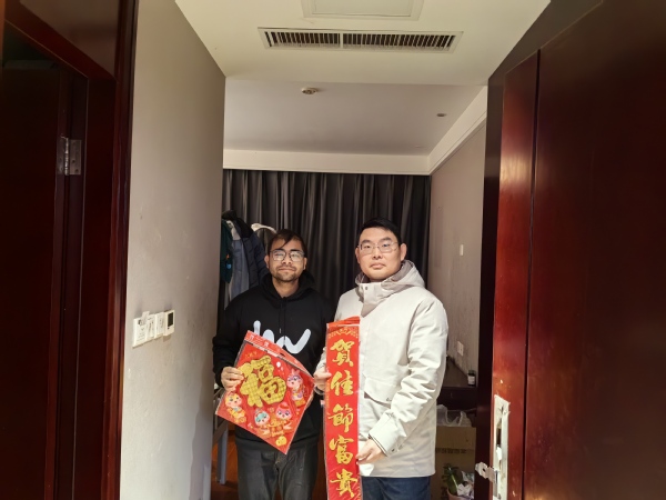 在走访过程中,丝路书院工作人员与留学生交流,详细了解留学生在校生活情况和假期安排,为他们送上慰问礼品。工作人员还提醒留学生注意人身财物安全、消除消防隐患、遵守校规校纪,度过一个安全祥和的春节。