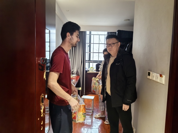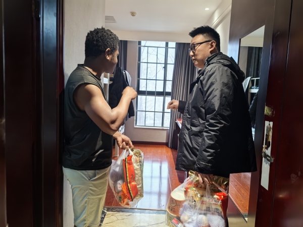 在新春佳节来临之际,丝路书院到留学生宿舍慰问在校的塔吉克斯坦、南非、津巴布韦和巴基斯坦等国留学生,为他们送去学校的关怀和新春祝福。