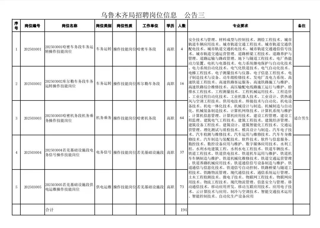 【稳就业、精准帮扶】优秀企业校园招聘会No.163:中国铁路乌鲁木齐局集团有限公司2025年招聘公告