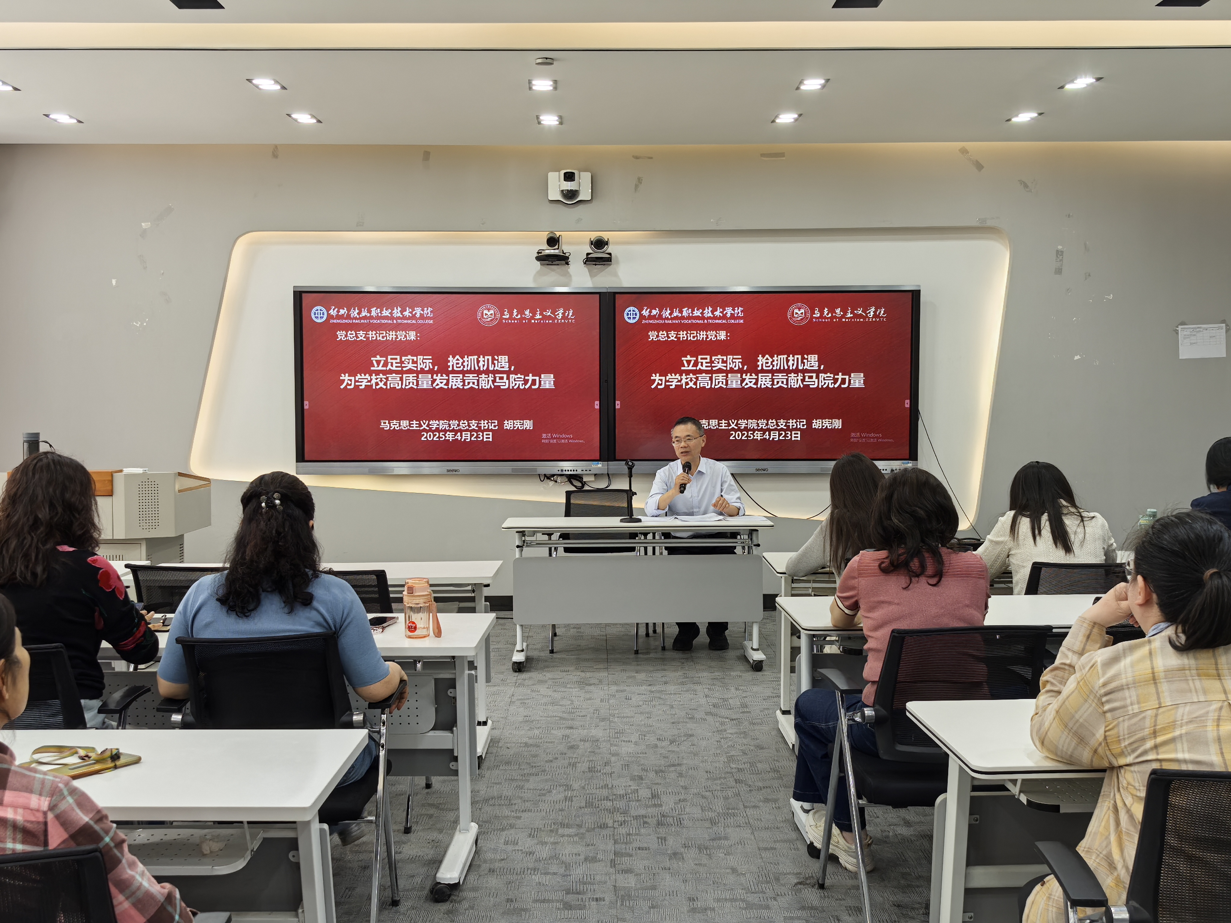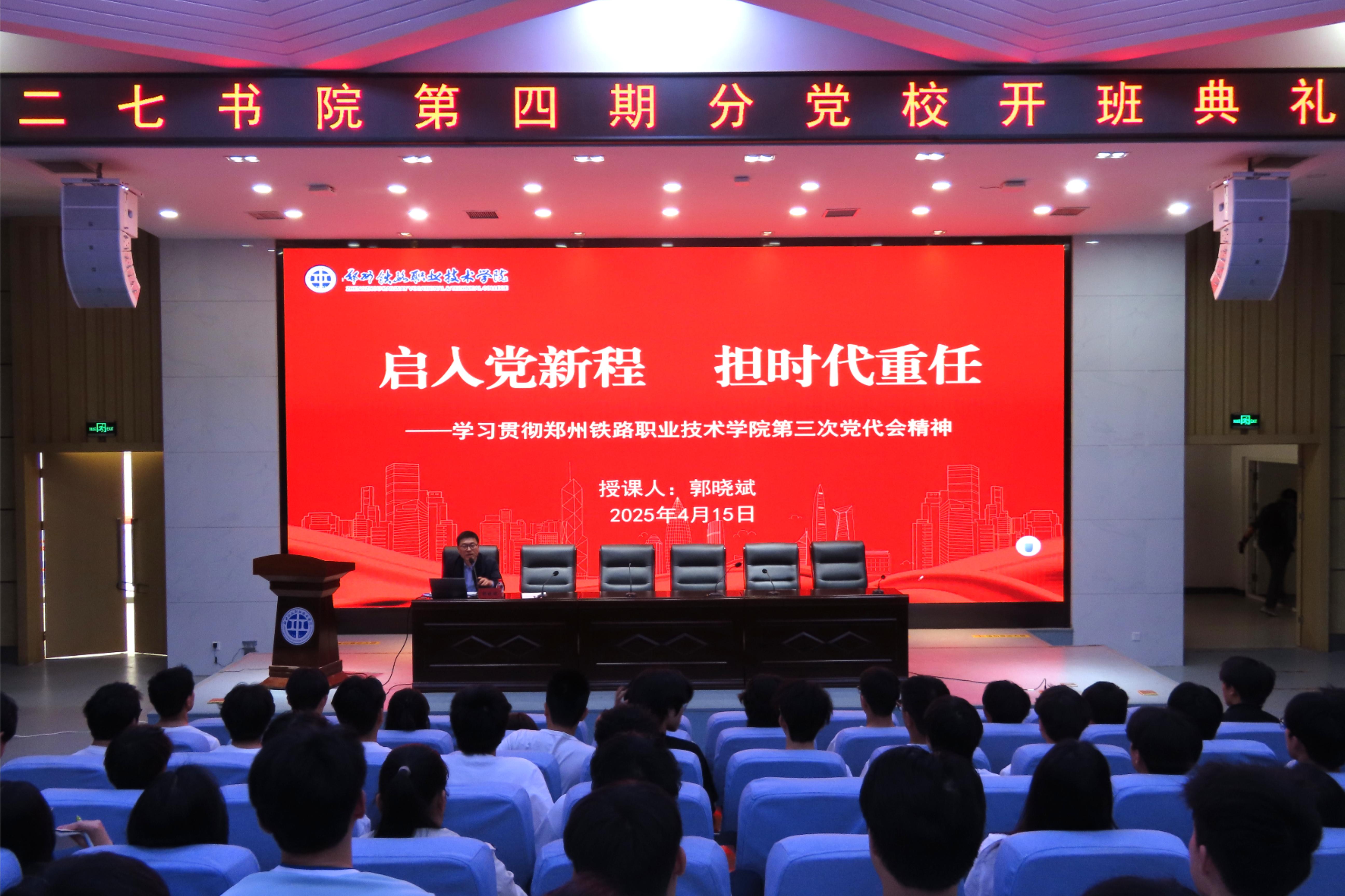 4月15日,二七书院党总支书记、院长郭晓斌在学校第二报告厅讲授专题党课,宣讲学校第三次党代会精神。二七书院党总支委员、分团委书记、育人导师和第四期分党校134名入党积极分子参加学习。