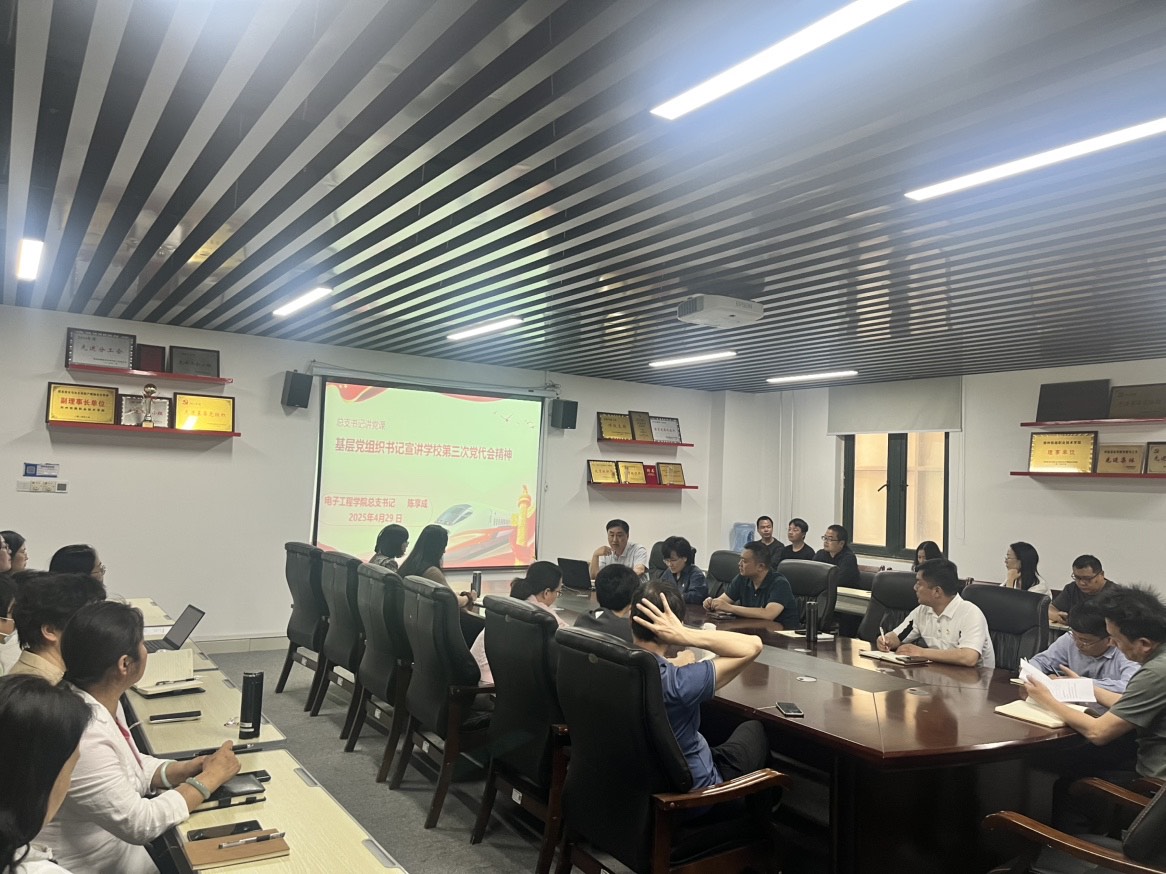 4月29日下午,为持续深化学校第三次党代会精神学习成效,推动精神实质转化为发展实践动能,电子工程学院党总支举行专题党课活动,学院党总支书记陈享成以学校第三次党代会精神学习为主题作专题授课,学院全体教师党员参加学习。