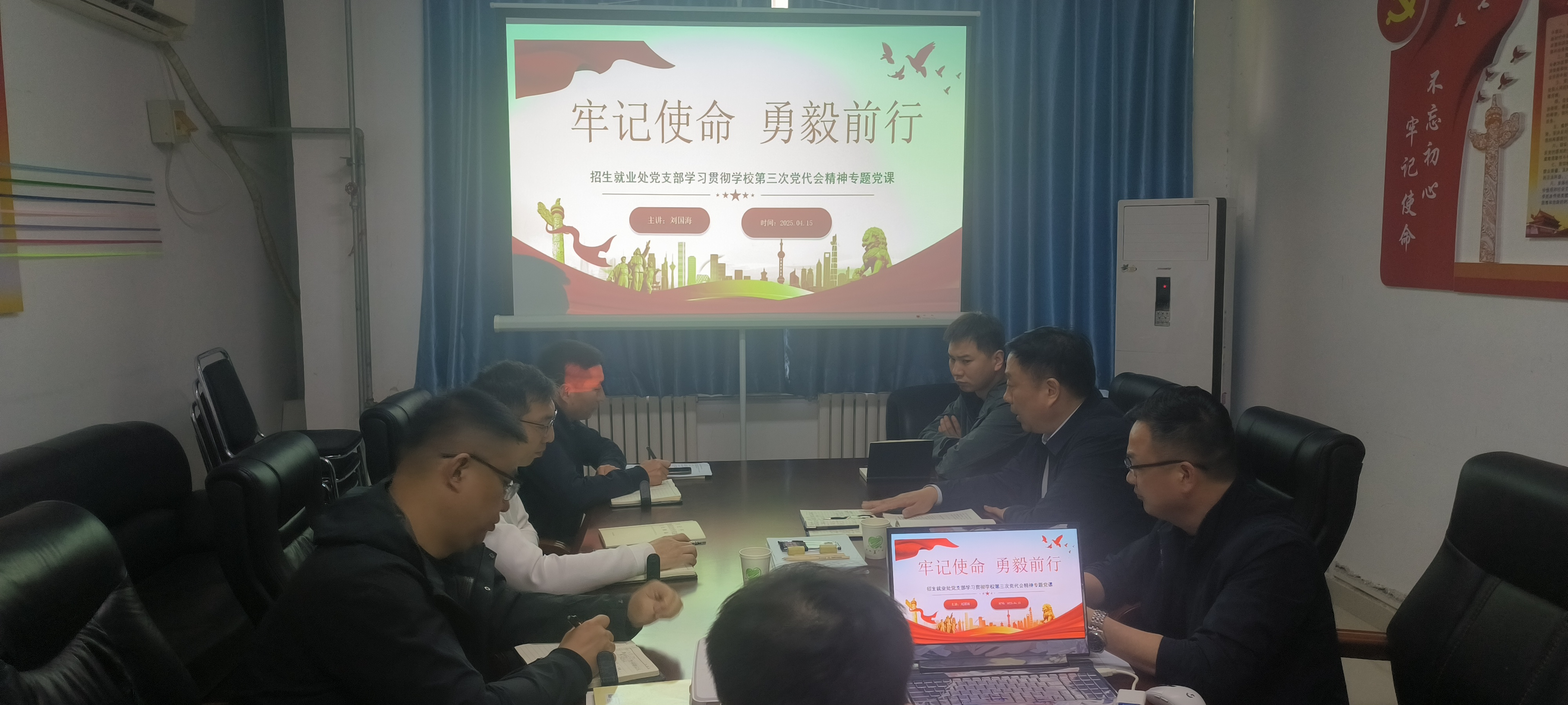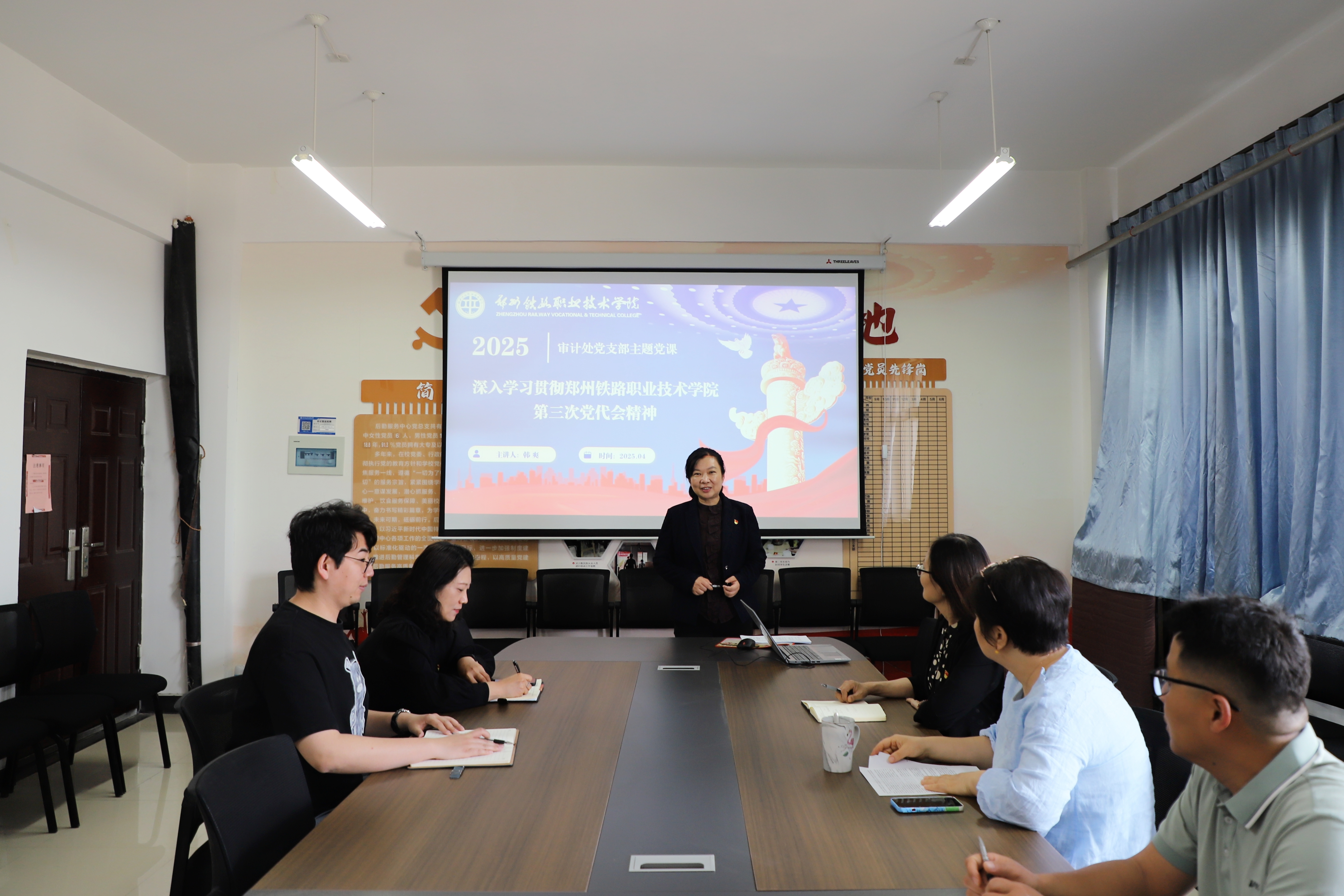 为深入学习贯彻学校第三次党代会精神,4月29日,审计处党支部召开全体党员大会,支部书记韩爽以《奋进新征程 建功新时代 深入学习贯彻学校第三次党代会精神》为主题,为支部全体党员讲授专题党课,审计处党支部全体党员参加,机关党总支副书记李苏怡参会指导。