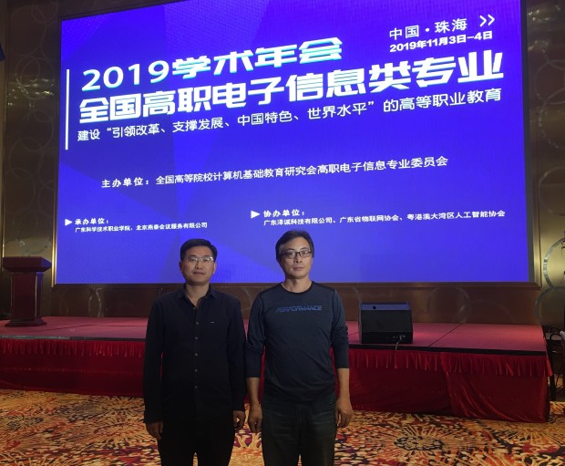 2019年11月3日--4日,全国高职电子信息类专业2019年学术年会在广东珠海横琴湾酒店会展中心召开,我院副院长黄根岭、电子信息教研室主任任全会应邀参加。