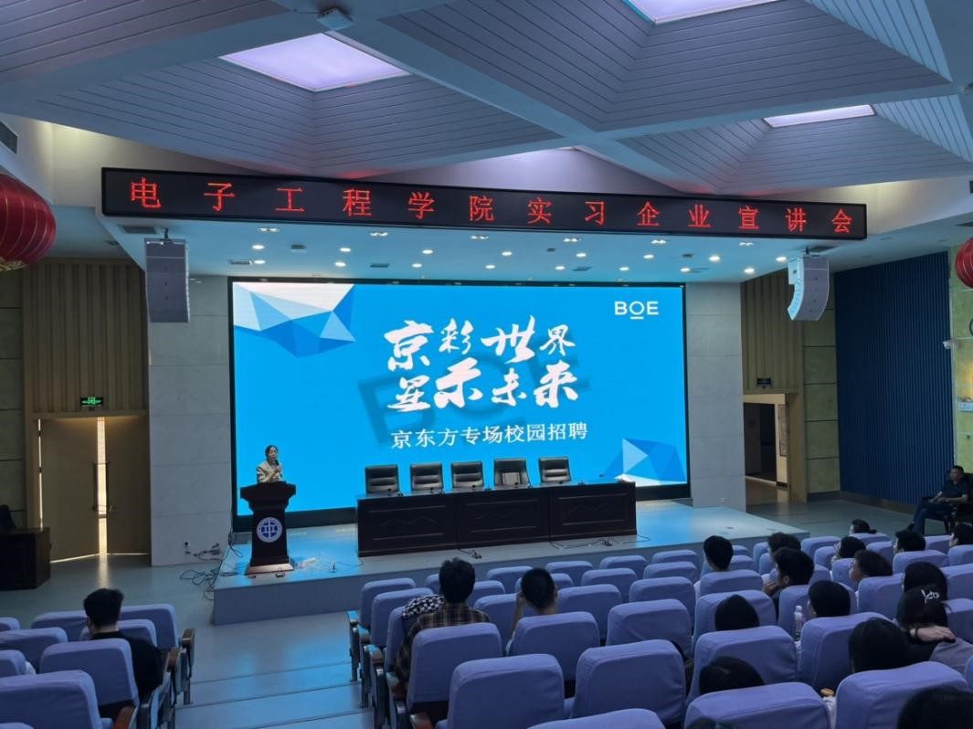 11月2日,电子工程学院在第二报告厅召开2024届毕业生岗位实习企业宣讲会,宣讲会邀请京东方、海康威视、昆山科森科技股份有限公司3家企业校园招聘负责人来校开展实习宣讲,宣讲会由电子工程学院副院长黄根岭主持,2024届全部毕业生参加。