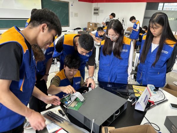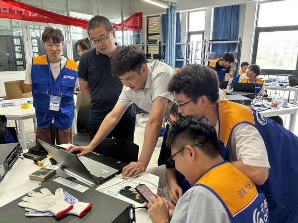此次生产实践项目由中信科移动技术专家全程讲授,主要完成DTTP教学型基站的安装、烧录和调试工作,满足堪站规划、基站网络部署、站开通调测及验证流程、5G+应用部署等实践教学需求。采用真实项目、真实设备、真实操作、真实过程、真实考核的方式进行,按照项目团队将学生分成了项目经理、装配工程师、测试工程师三种类型,现场布置了组装区、系统测试区、交付测试区三个区域,极大地丰富了学生的学习体验,提升了学生的专业技能和实践动手能力。