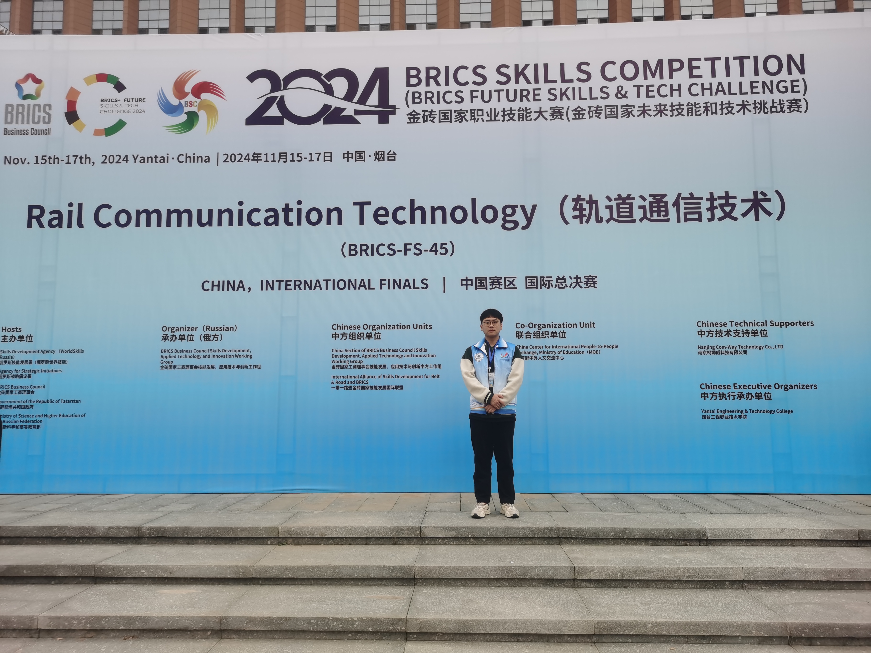 11月15日至17日,2024金砖国家职业技能大赛轨道通信技术赛项国际总决赛在烟台举行,经过激烈角逐,我校电子工程学院铁道通信与信息化技术专业学生段永浩沉着应战,从全国42支参赛队伍中脱颖而出,荣获国际总决赛三等奖。