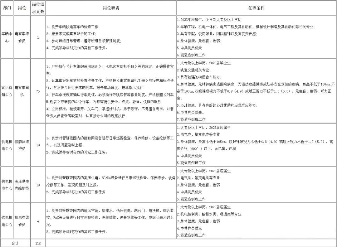 运营一分公司:本次招聘计划招录5个岗位118人。