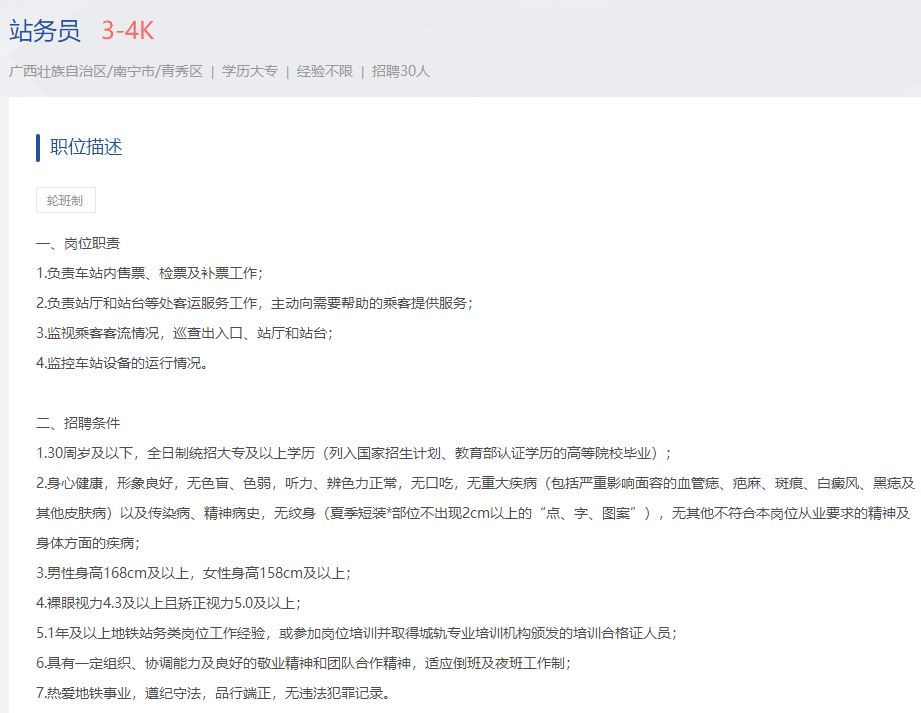 具体职责及任职资格条件请登录“广西人才网”搜索“南宁轨道交通运营有限公司”查询。