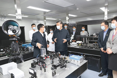 4月19日,在清华大学建校110周年校庆日即将来临之际,中共中央总书记、国家主席、中央军委主席习近平来到清华大学考察。这是习近平在清华大学成像与智能技术实验室同师生们亲切交谈。 |