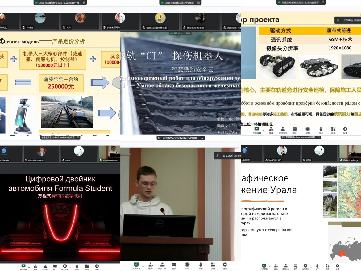 本次活动由我国际交流与合作处、丝路书院(国际教育学院)及乌拉尔国立交通大学国际处、科技处及创新技术研究中心承办。经中俄两校项目征集、初赛遴选、专家评审后,共有6支队伍入围此次专场比赛。同学们通过精心制作的PPT演示,全面地展示对自己未来的职业规划以及创业的创新设计,内容丰富,创新十足。
