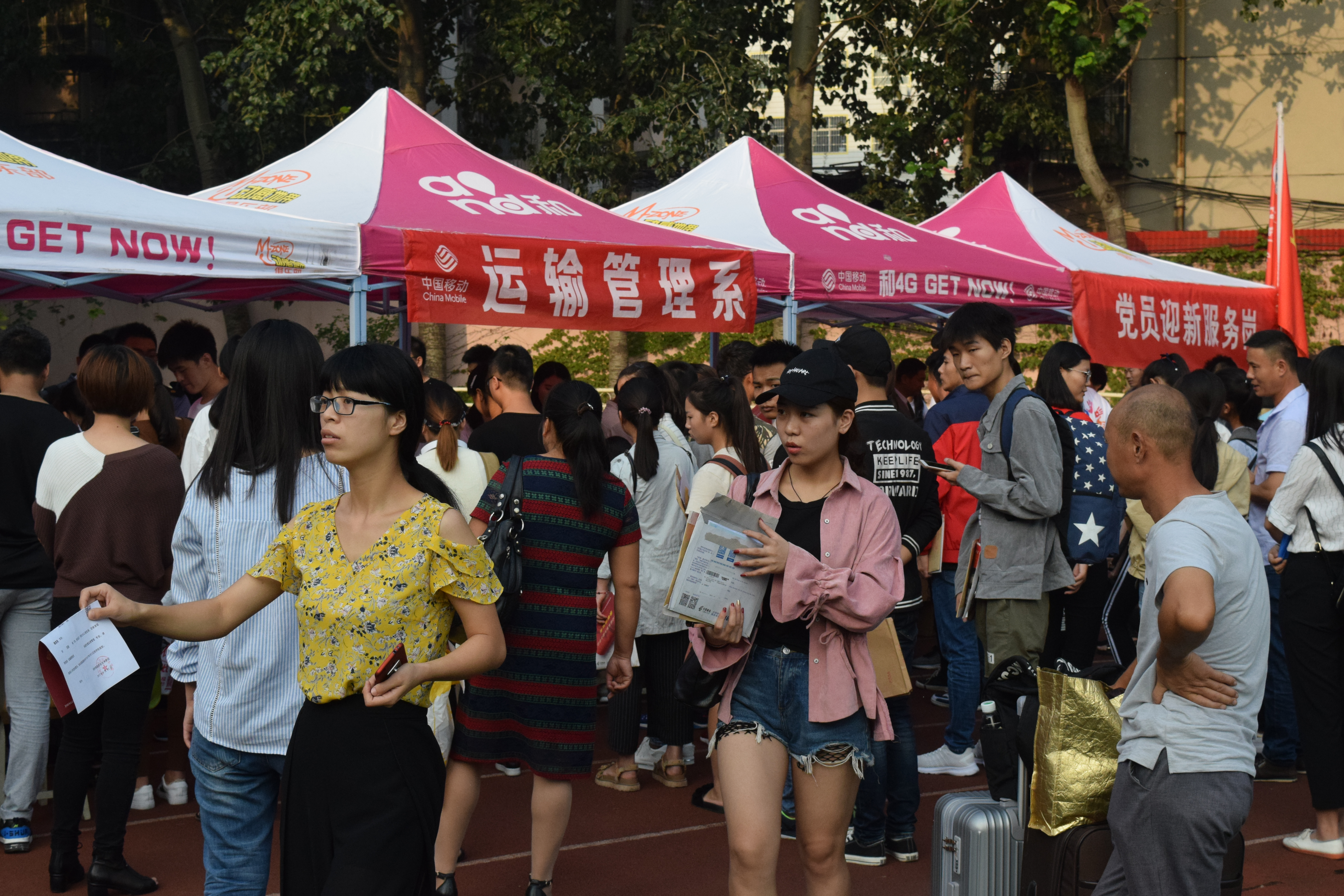 丹桂飘香,又是一季迎新时。2017年9月12日,我校2017级新生报到注册工作正式开始,运输管理系将迎接一批热血青春的新生。系主任伍玫、党总支书记王冬、党总支副书记刘斌、新老校区各位辅导员老师亲临现场负责迎新工作,新老校区团学组织干部也积极投身各项迎新工作中。 为确保迎新工作顺利进行,早6点,大家就来到迎新处搭帐篷、摆桌椅,一切准备就绪后,所有学生干部分工协作:入学注册、分宿舍、办理绿色通道等一系列工作有序进行。系团学组织干部分别负责新生咨询、引导、疏散、维持秩序、拍摄等工作。新生报到的人流量短期内剧增,但迎新工作流程仍然井然有序地进行着,避免了新生花费大量时间排队的状况,新生也被这种朝气蓬勃的氛围感染,积极配合工作,脸上洋溢着对新生活的期待。 2017级新生的到来为我系补充了大量新鲜血液,一张张新面孔中激情四射、充满活力。在新学年里,希望运输管理系学子能够一同发扬我系青春激扬、积极进取、团结协作的优良作风,为我系发展增光添彩。
