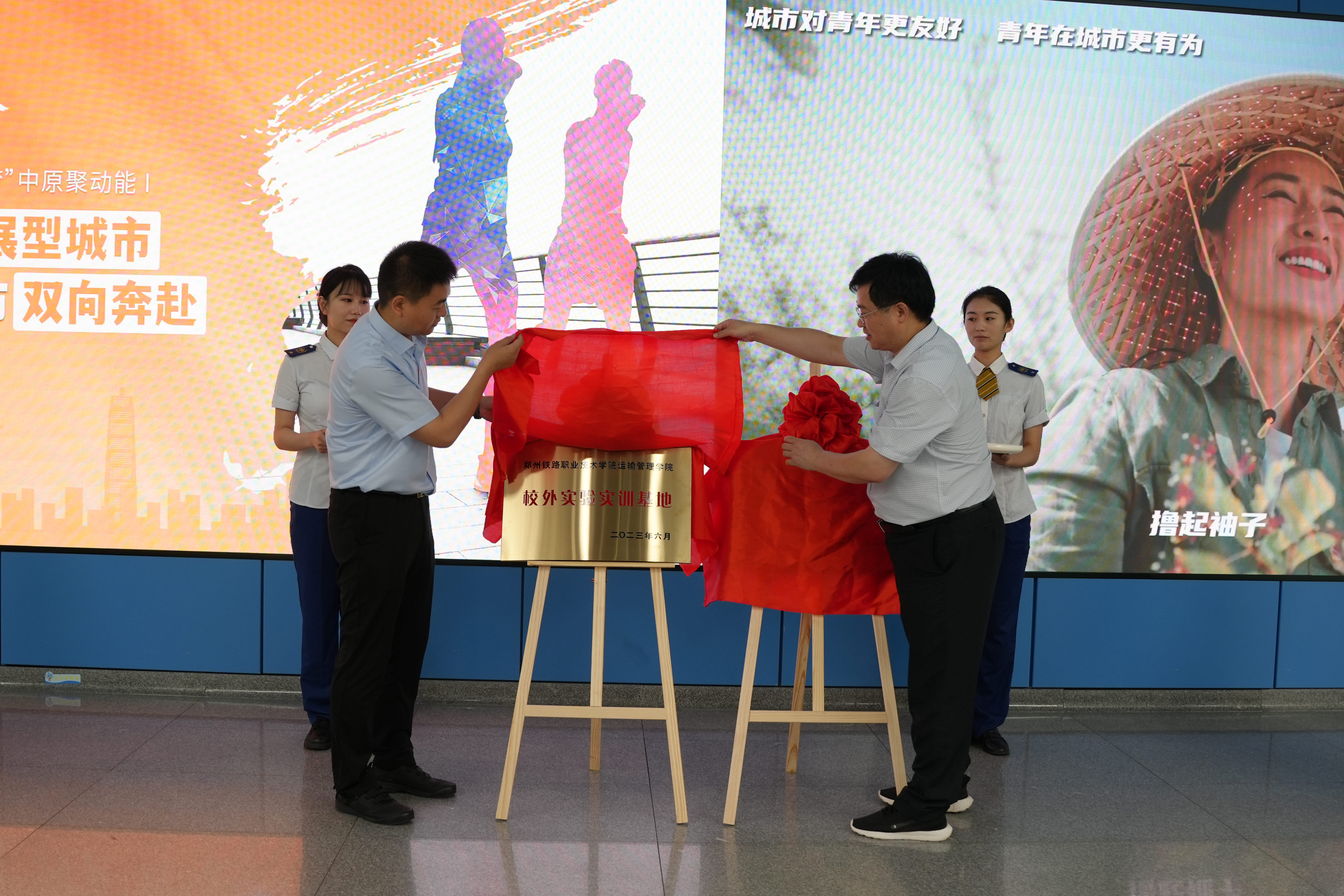 本次活动以“活力郑州,共育人才”为主题。首先,会展中心站青年员工和我校运输管理学院青年志愿者代表发言。双方领导致辞,表示“大学生校外实验实训基地”的成立,为青年学生提供了多样化和立体化的岗位实践环境。在地铁车站建立“青年志愿服务站”,有利于将校企双方之前签订的志愿服务协议落实落细;有利于展示当代大学生良好的精神面貌和青年担当;有利于将青年优先发展理念融入城市发展战略。让青年在感受多样、畅达的交通出行体验的同时,校企协同聚力,不断提升青年生活“幸福指数”,共同推动青年成长与企业发展、城市繁荣有机融合。 徐宏平与张红欣共同为“环球360管理网运输管理学院校外实验实训基地暨青年志愿服务站”揭牌。