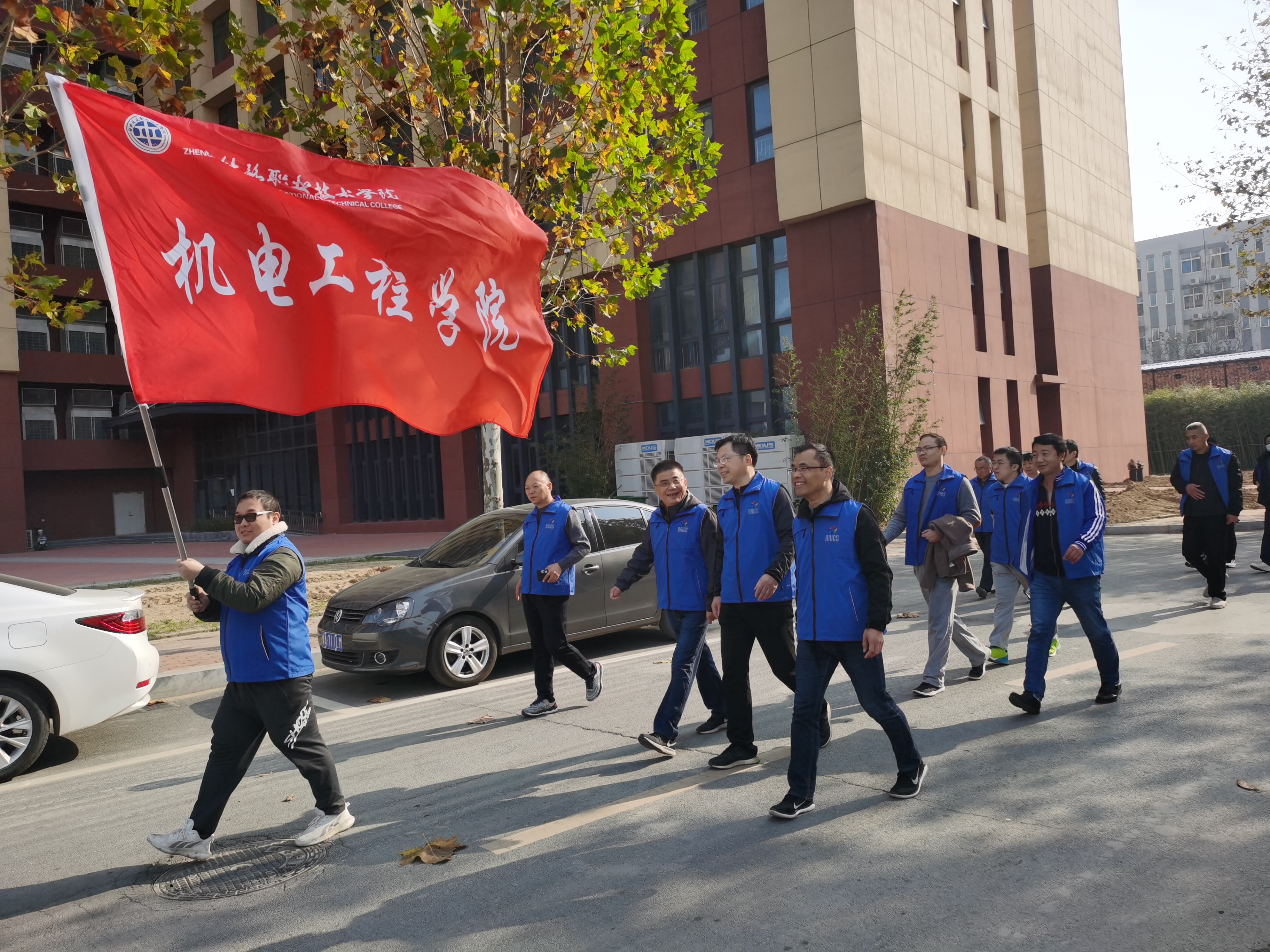 在喜迎校庆70周年之际,为提高全院教职工身体素质,增加凝聚力,丰富文化生活,保持热情和活力,机电工程学院分工会积极响应校工会促进职工身心健康、丰富职工文化生活、加强职工沟通交流的号召,于11月16日下午组织全体老师开展系列趣味健身活动。随着一声令下,老师们从铁龙广场出发,步履矫健,铿锵有力,健步向前。红旗迎风飘扬,大家服装整齐,跟随音乐,大步向前,昂扬向上,展现出了机电工程学院的精神风貌,在校园中形成一道亮丽的风景。