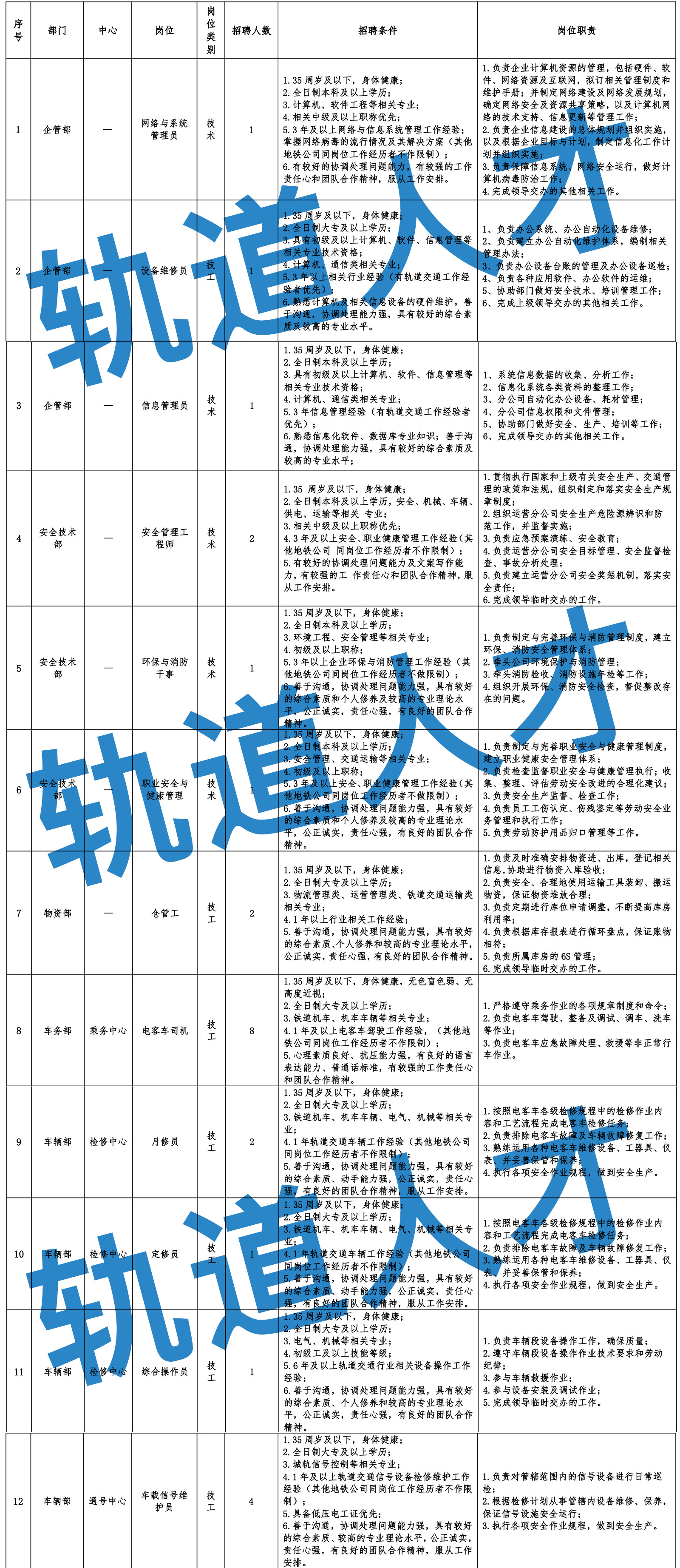 为适应常州城市轨道交通的快速发展,吸纳更多优秀的专业人才加入常州地铁,现面向社会广纳人才,欢迎报名应聘。现将有关事项公告如下(岗位条件详见附件):