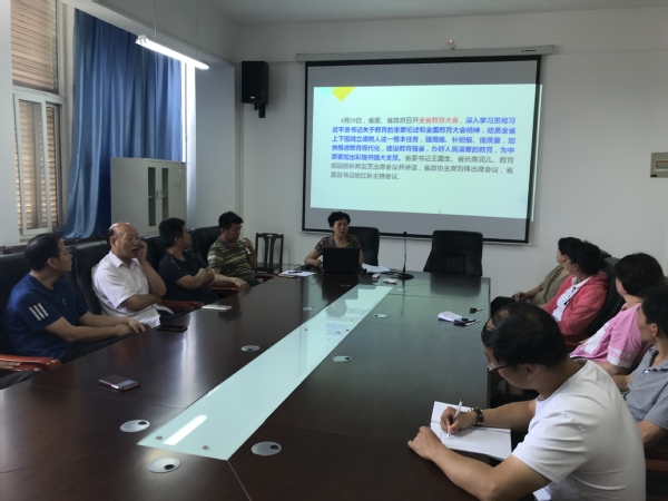 6月18日下午,公共教学部在7412会议室召开全体教师党员大会,传达学习全省教育大会精神。 党总支书记薄爱敬以“奋力书写教育高质量发展新篇章”为题,从充分认识全省教育大会的重要意义、准确把握学习贯彻全省教育大会精神的重点任务、全力推动全省教育大会精神落实落地三方面向大家宣讲了全省教育大会精神。