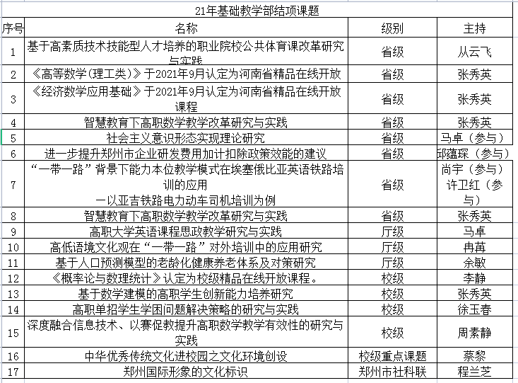 2021年基础教学部结项课题一览表