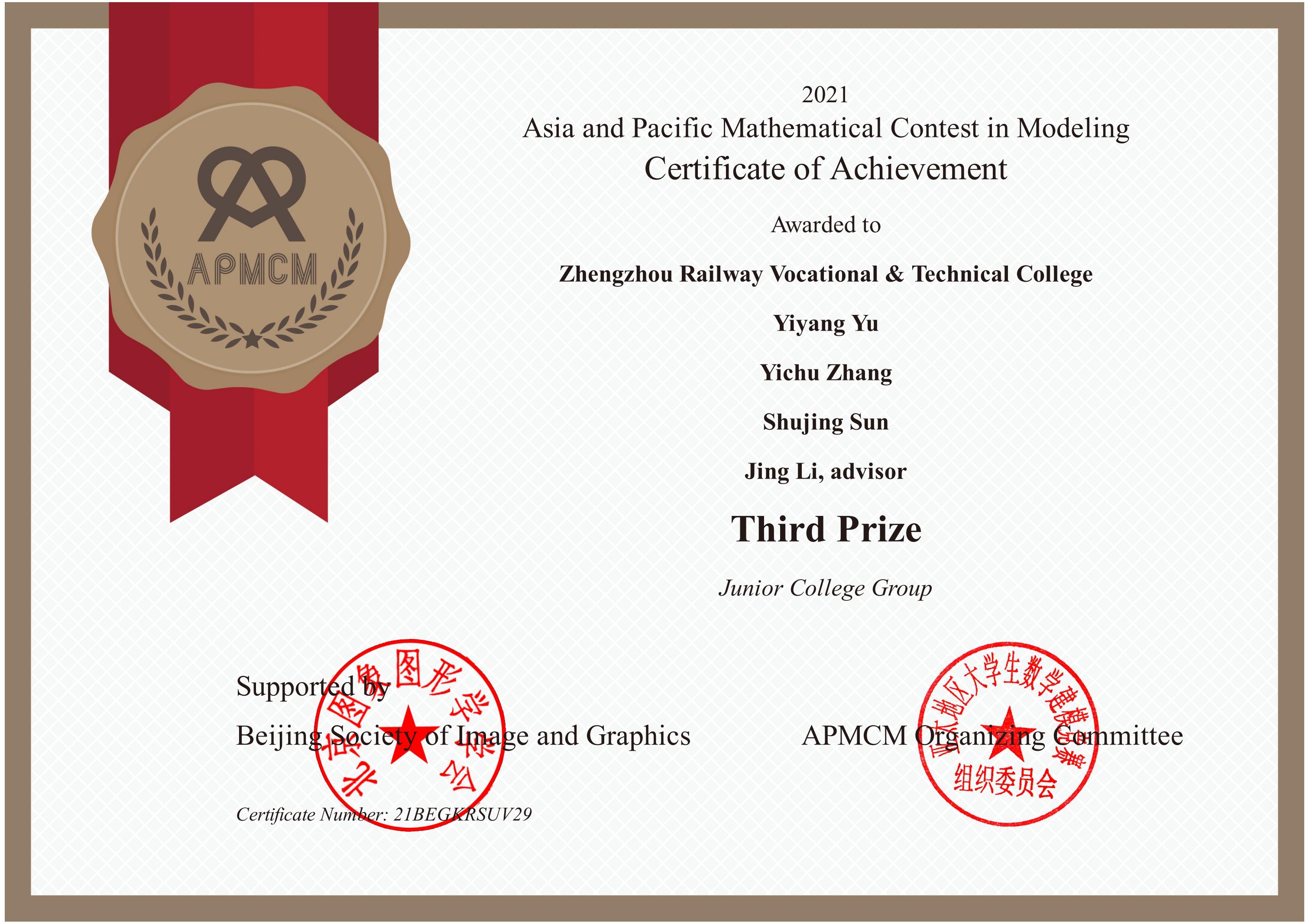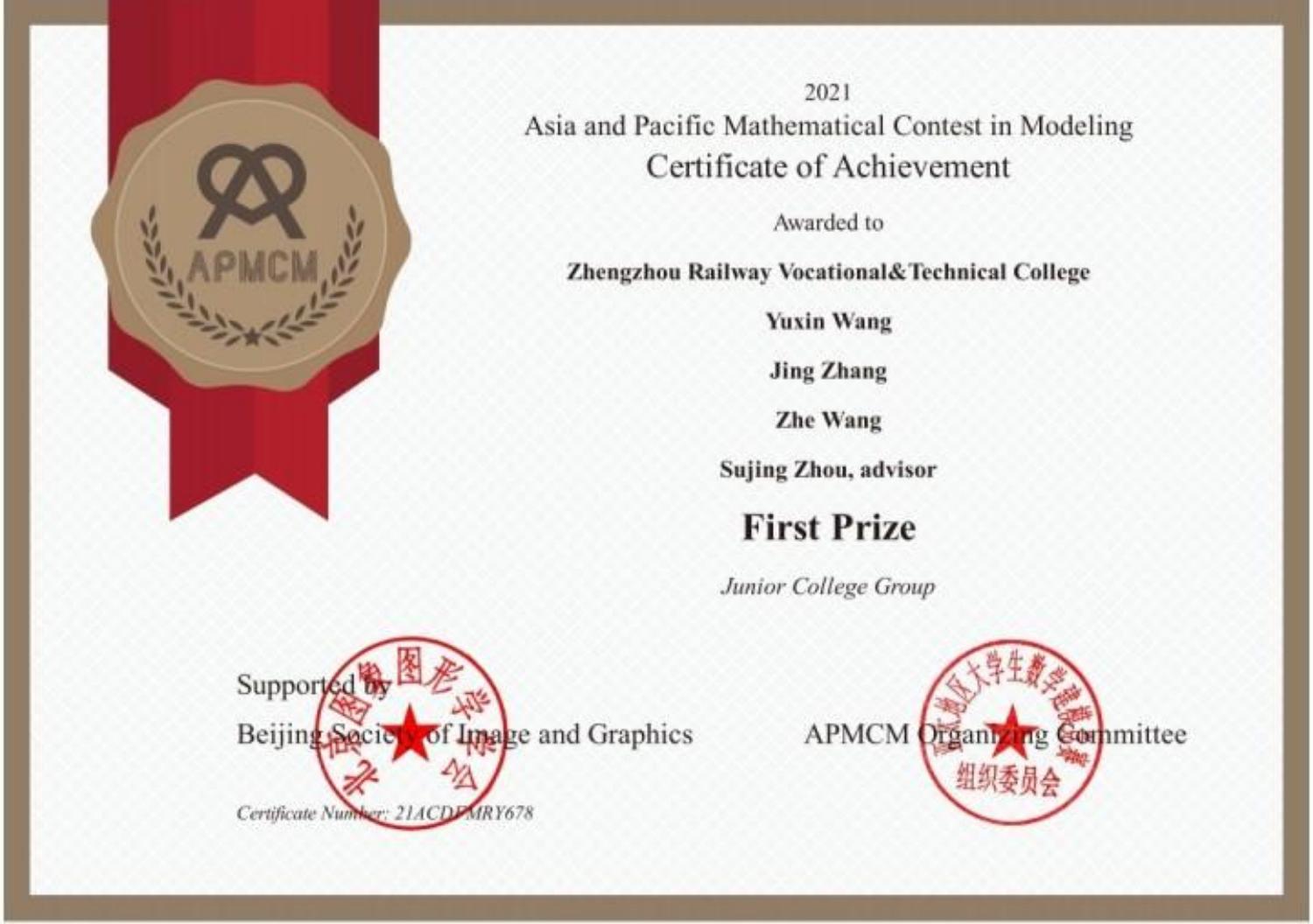 我校学生在2021年第十一届APMCM 亚太地区大学生数学建模竞赛中喜获佳绩