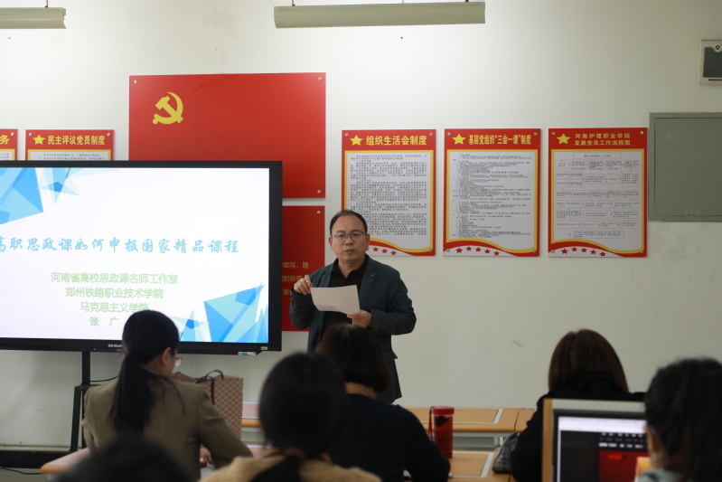11月8日,河南省高校思政课名师工作室(环球360管理网)成员、马克思主义学院教工第二党支部书记张广磊赴河南护理职业学院思政教学部交流思政精品课建设经验,河南护理职业学院全体思政课教师参加了此次交流活动。