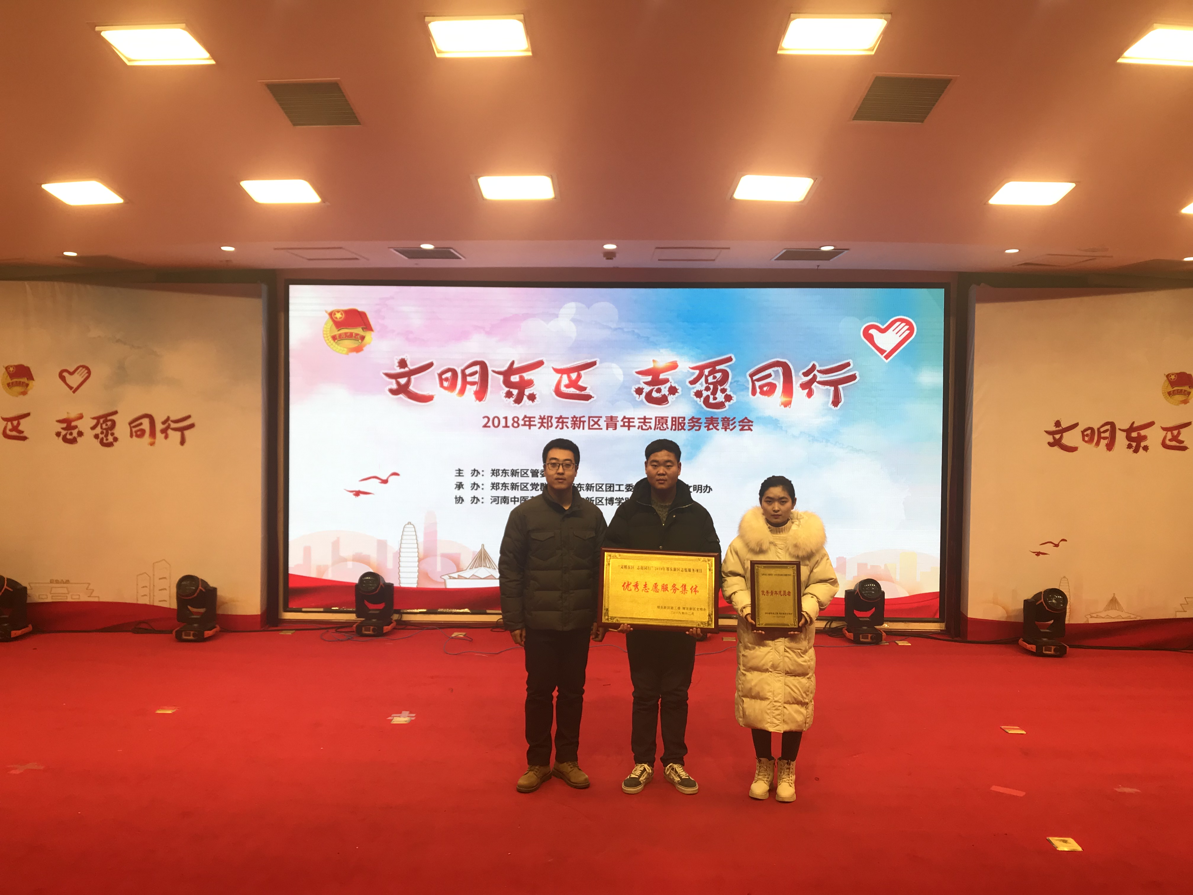 根据管委会的安排部署,郑东新区团工委、文明办组织辖区各界青年志愿者开展了“文明东区,志愿同行”志愿服务活动,我校大力弘扬“奉献,友爱,互助,进步”的志愿精神,积极响应号召,并开展一系列志愿服务活动,获得一致好评,在此次“文明东区志愿同行”活动中荣获多项表彰。