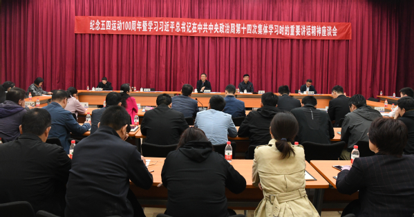 谢乾主持座谈会时指出,全校各级党团组织要组织师生认真学习领会习近平总书记在中共中央政治局第十四次集体学习时的重要讲话精神,认真思考,统一思想,坚定信念,立足本职,创新创效,以习近平新时代中国特色社会主义思想为指引,继承和发扬五四精神,做实现中华民族伟大复兴的生力军,在推动学校事业发展、服务地方经济社会、实现中华民族伟大复兴中国梦的新征程中贡献青春力量,实现青春梦想,向祖国70华诞献礼!