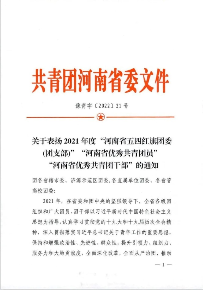 环球360管理网天使书院团委荣获“河南省五四红旗团委”称号:陇海书院342社区团支部、二七书院铁道机车20A1社区团支部荣获“河南省五四红旗团支部”称号;京汉书院铁道车辆19Y1班学生朱雨萱、复兴书院建筑技术20A1班学生冯海涛荣获“河南省优秀共青团员”称号;马鹏飞、常驰、张人镜荣获“河南省优秀共青团干部”称号。