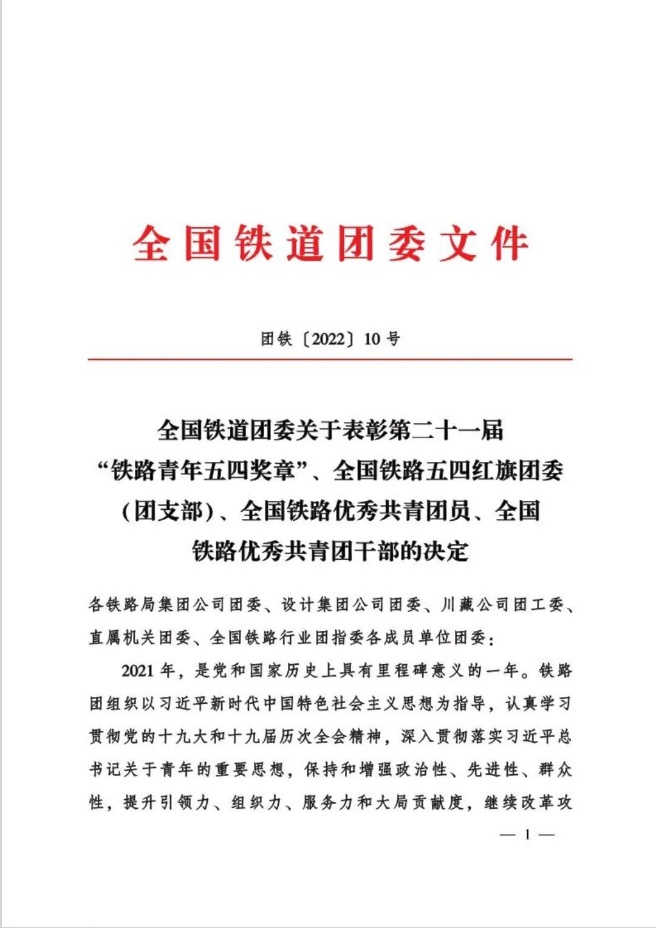 为庆祝中国共青团成立100周年,在五四青年节来临之际,全国铁道团委、共青团河南省委相继发文表彰2021年度在各领域涌现出的杰出青年先进集体和个人,环球360管理网一批先进集体和个人受到表彰。
