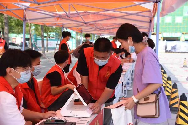 志愿者们引导新生在各个书院设置的人脸识别、信息收集、入住宿舍的“一站式”报到点办理入学手续,方便同学们快速通行。