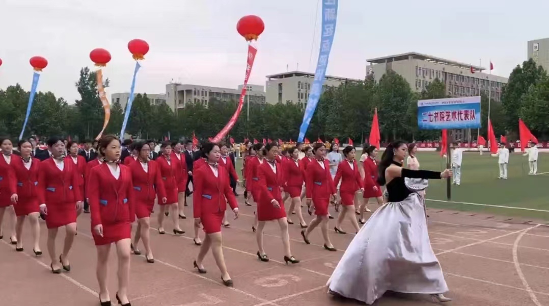 2023511日,早上830分,我校2023田径运动会于运动场上举办。运动会开幕式上,二七书院艺术学院代表方阵大展青春风采