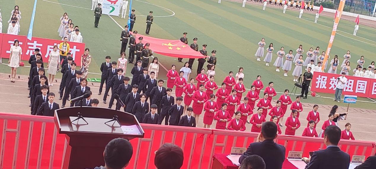 在运动开幕式的正式现场上,同学们穿着本专业的制服、西装,昂首阔步地走向主席台。稳健的步伐,姣好的体态展现了同学们的美好风貌彰显了同学们的自信气概。