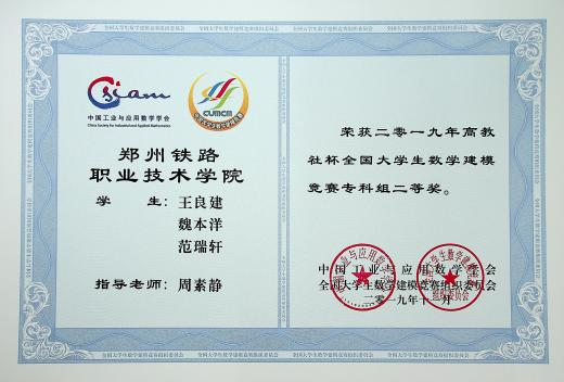 2018年11月23日,由教育部高等教育司、中国工业与应用数学学会主办的2018年全国大学生数学建模竞赛成绩揭晓.我校获得专科组国家一等奖1个,二等奖3个,河南省一等奖7个,二等奖5个,三等奖1个。此次比赛河南省专科组共获得国家一等奖1个、二等奖5个。这是我校继2016年囊括河南省当年国赛两个一等奖后再次省内折桂。同年被评为郑州铁院明星社团。学生参加全国大学生建模竞赛共获得国家一等奖6项、二等奖23项、省一等奖58项。其中, 2016年2个队狂揽河南省仅有的2个国家一等奖(全国获奖率仅有1.9%)、另2个队获得国家二等奖(全国获奖率仅有5.8%),为此河南省教育厅网站对我校出色的数学建模成绩作了宣传,2018和2019年又连续两年独揽河南省唯一的全国一等奖。2011年-2020年,全国专科组共有505所高校的学生获得过国家奖,在获国家奖的总数排名中,我校位居全国第7(并列),河南省第1。学生参加美国(国际)大学生数学建模竞赛,获得二等奖2项,三等奖10项;参加亚太杯大学生数学建模竞赛获得一等奖1项, 二等奖2项, 三等奖12项。协会积极分子还组队参加“中青杯”、“认证杯”大学生数学建模竞赛、“挑战杯”中国大学生创业计划竞赛和全国大学生课外学术科技作品竞赛等,取得各类获奖数量达130余项。