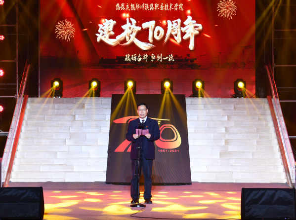 校长马玉霞主持庆祝大会时表示,自1951年在古都开封建校,学校肩负着培养社会主义合格建设者和可靠接班人的重要使命,坚实地走过了七十年峥嵘岁月。几代铁院人奋发有为、砥砺前行、接续奋斗,创造了郑州铁院的辉煌历史。进入新时代,学校要全面贯彻党的教育方针,落实立德树人根本任务,把握时代机遇,加强内涵建设,认真谋划学校“十四五”发展规划,深入推进“双高计划”建设,不断推进学校各项事业高质量发展,在服务和融入新发展格局中担当新使命、展现新作为、创造新业绩。