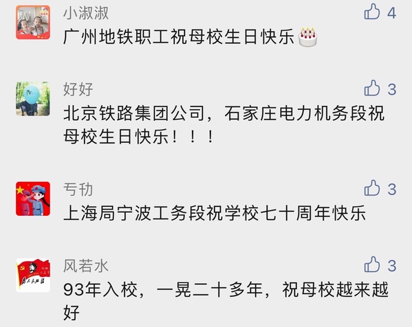70周年校庆期间,广大校友“云”端相聚,畅叙同窗情谊,追忆求学生涯,遥寄美好祝福,用各种方式向母校献礼致意。