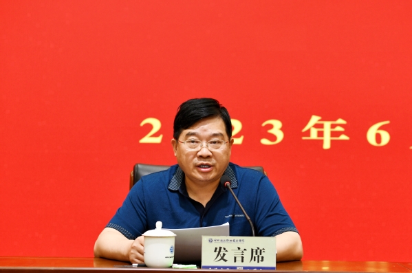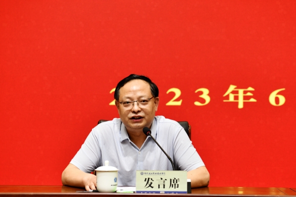 6月7日上午,我校在新校区第一报告厅举行学习贯彻习近平新时代中国特色社会主义思想主题教育第一次调研成果交流会。省委教育工委主题教育第三巡回指导组组长戴天增,副组长鲁守璞,指导组成员刘远东、李晗晟到会指导。学校领导班子成员和全体中层干部参加会议。会议由党委副书记、纪委书记谢乾主持。
